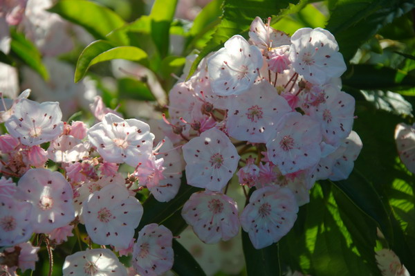 Il est trop tard pour voir les rhododendrons en fleur mais les Lauriers des montagnes sont tout aussi magnifiques.