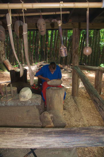 L'artisanat et le savoir-faire ancien des Cherokee sont démontrés à travers le village : poterie, vannerie, sculpture, ...