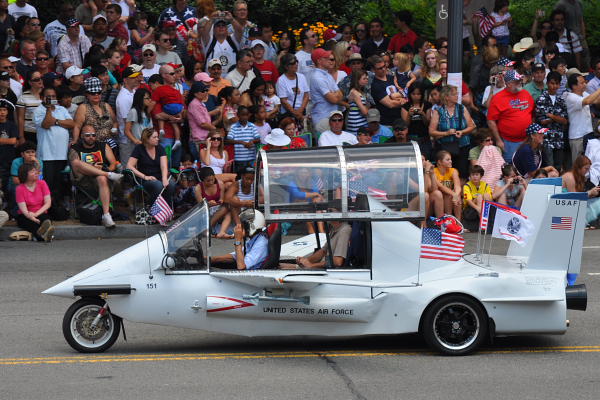 Military are of course well present. Among them we prefer the ones wearing the costumes of the American revolution era. Nevertheless the U.S. Air Force has found an original way to march.