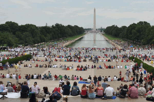 17h30 la gente ya ha instalado alrededor de "reflectingpool" para los fuegos artificiales de la tarde.